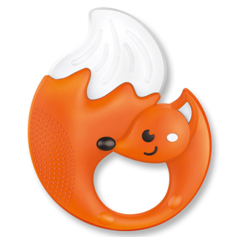 Forma rotundă a vulpiței portocalii cu coadă albă oferă confort și poate fi folosită ca jucărie de dentiție.