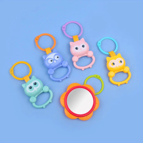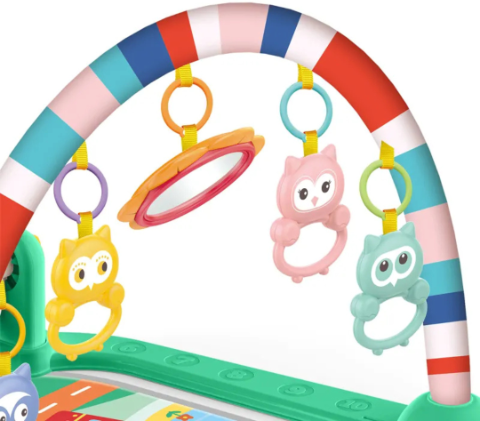 Include o arcadă cu jucării suspendate, precum bufnițe simpatice și o oglindă care stimulează descoperirea de sine.