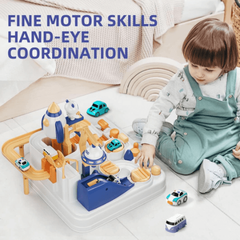 Fiecare mașinuță se deplasează pe trasee diferite, trecând prin provocări și obstacole ce stimulează logica și atenția.
