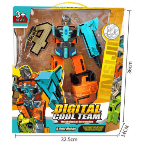 Robotul impresionant de 28 cm se formează din 5 cifre transformabile: 0, 1, 2, 3 și 4, oferind copiilor o experiență unică de asamblare și joc.
