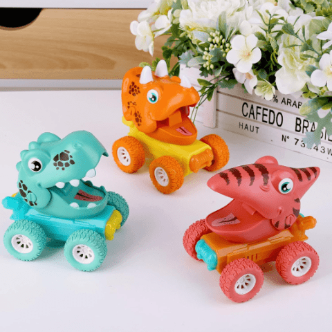 Mașinuța dinozaur are un design vesel și colorat, cu detalii prietenoase care atrag atenția copiilor.