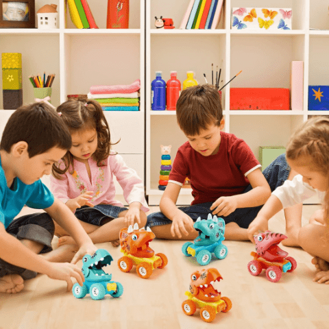 Prin apăsarea capului, mecanismul „Press & Go” face ca jucăria să pornească rapid, oferind distracție fără baterii.