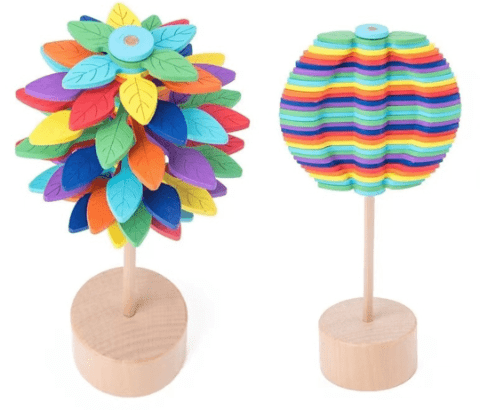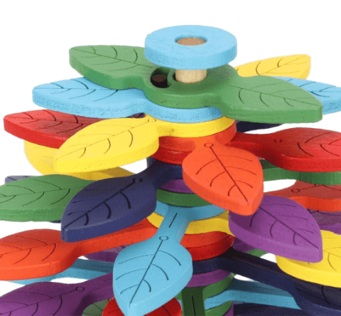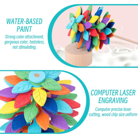 Arborele Montessori din lemn atrage atenția prin frunzele viu colorate care prind viață atunci când sunt puse în mișcare.