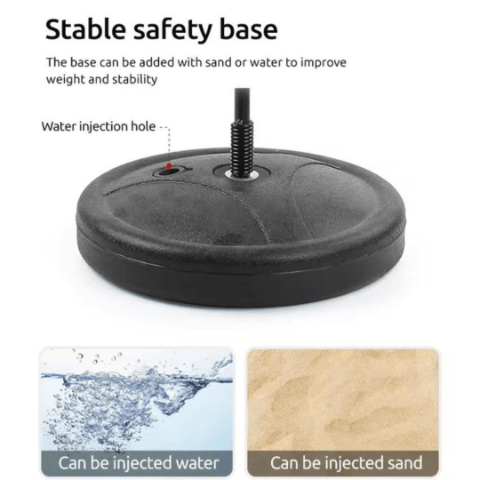 Baza stabilă poate fi umplută cu apă sau nisip, oferind siguranță și rezistență în timpul loviturilor.