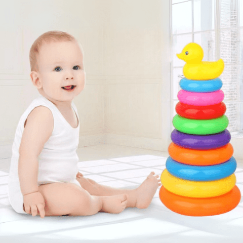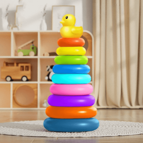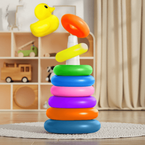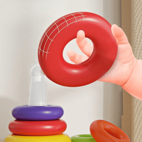 Inelele se așază ușor unul peste altul, dezvoltând coordonarea și gândirea logică.