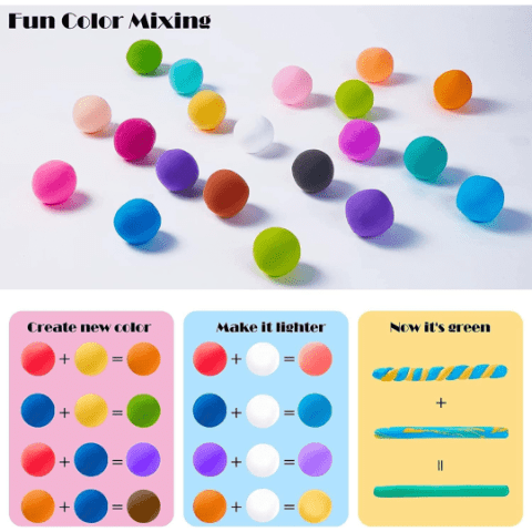 Setul include 36 de culori vibrante de plastilină air dry clay, ambalate individual pentru o utilizare curată și practică.