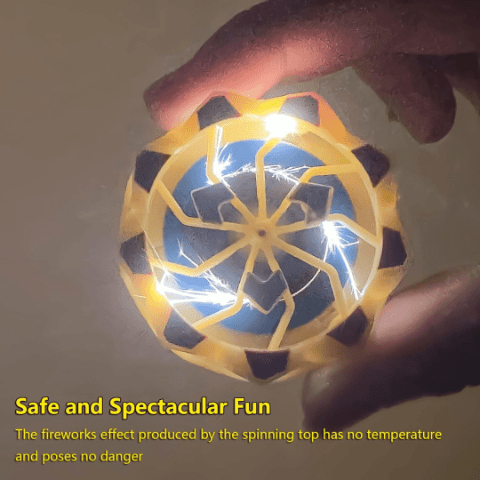 Prin rotație rapidă, jucăria produce scântei vizuale sigure, care imită focurile de artificii.