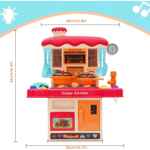 Cu dimensiunile de 42 × 35 × 15 cm, bucătăria este compactă și se potrivește perfect în orice cameră de joacă.
