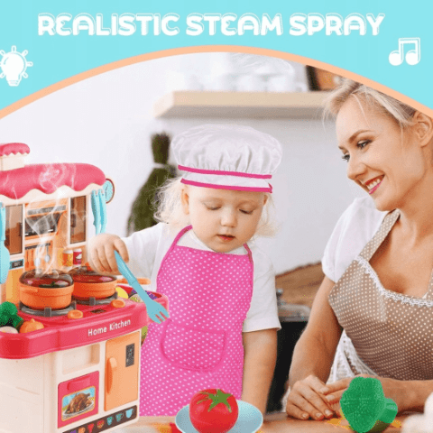 Bucătăria de jucărie Home Kitchen în varianta roz aduce copiilor o experiență realistă de gătit, cu design modern și culori atrăgătoare.
