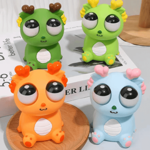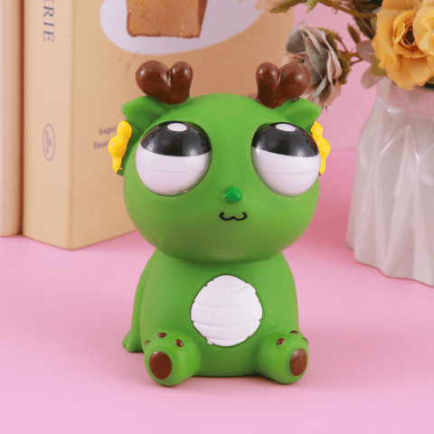 Dragonul verde antistres are un design simpatic, cu ochi mari bulbucați care ies atunci când este strâns, stârnind zâmbete instant.