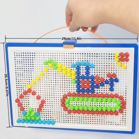 Un joc mozaic Montessori care dezvoltă creativitatea, concentrarea și recunoașterea culorilor.