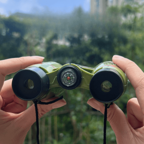 Disponibil în culori vii – albastru, galben, roșu și verde – fiecare copil își poate alege binoclul preferat pentru aventurile de afară.