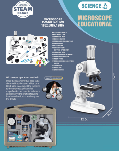 Descoperă lumea microscopică cu acest microscop educativ special creat pentru micii exploratori pasionați de știință.