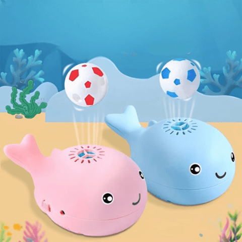 Balena zâmbitoare atrage imediat atenția celor mici, fiind o jucărie interactivă care plutește magic mingea în aer.