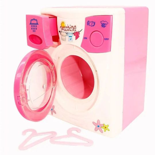 Copiii pot folosi mașina de spălat în jocuri imaginative, dezvoltând creativitatea și coordonarea.