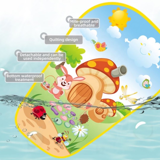 Salteluța moale și confortabilă permite joaca în siguranță atât în poziția culcat, cât și pe burtică, susținând dezvoltarea musculaturii gâtului și spatelui.