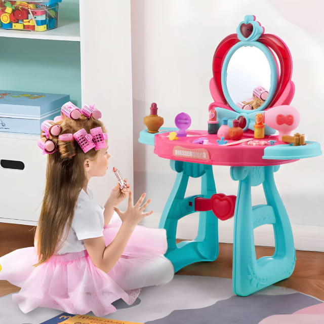 💄 Joacă de rol care dezvoltă încrederea – copilul se privește în oglindă, alege accesoriile și imită rutina zilnică de îngrijire într-un mod sigur și distractiv.