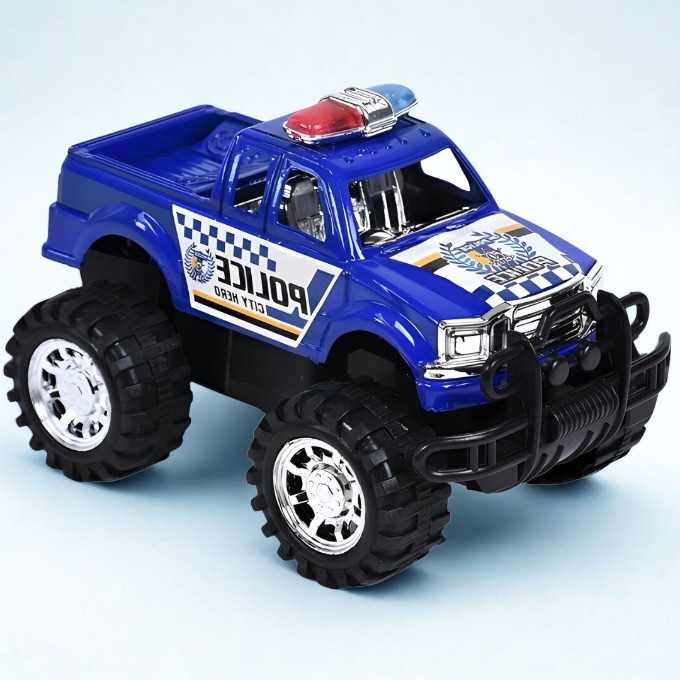 Mașina de poliție off-road pentru copii este concepută pentru aventuri pline de acțiune, având roți mari tip monster truck care pot depăși obstacole și suprafețe dificile. Designul realist de vehicul de intervenție transformă joaca într-o misiune de salvare, stimulând imaginația și jocul de rol.