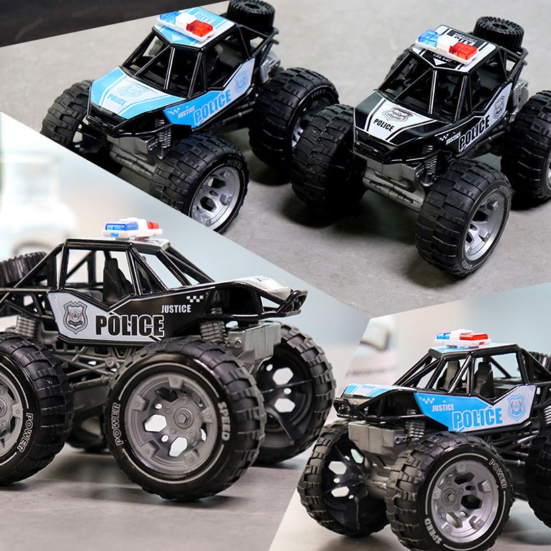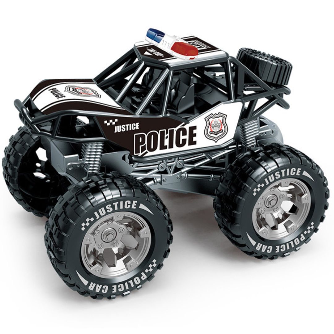 Este o mașină de jucărie ideală pentru copiii pasionați de mașini off-road, vehicule police și jocuri dinamice care combină distracția cu explorarea activă.