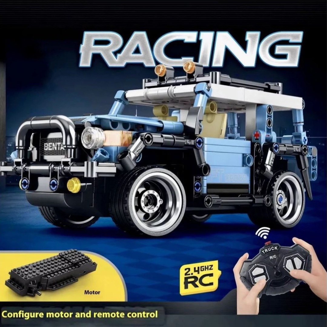 Acest set de construcție cu mașină RC off-road transformă joaca într-o experiență completă, în care copilul construiește pas cu pas propriul vehicul și apoi îl controlează din telecomandă pentru aventuri pline de acțiune.