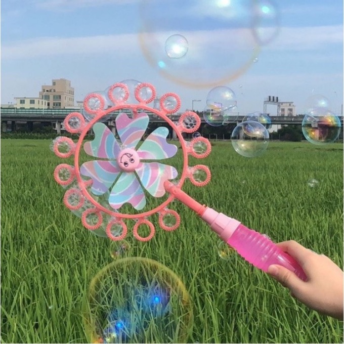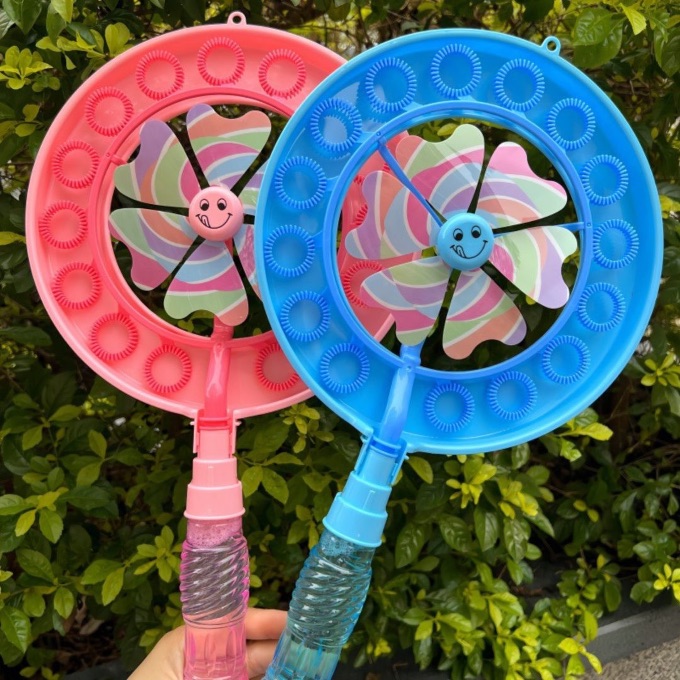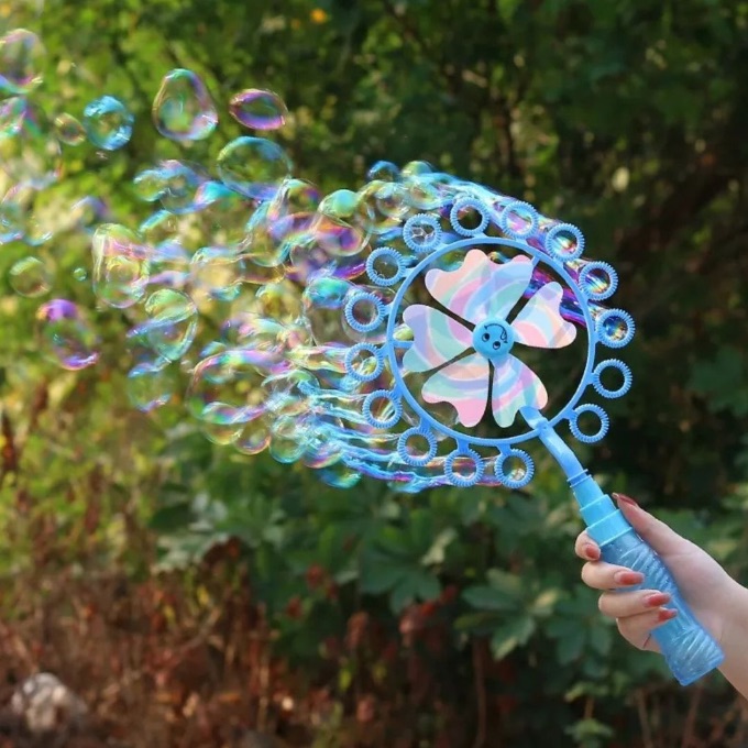 Bagheta pentru baloane de săpun cu elice rotativă transformă fiecare joacă într-un spectacol plin de baloane colorate.