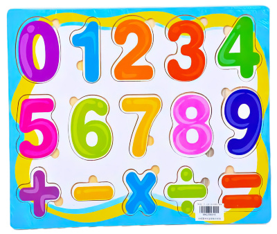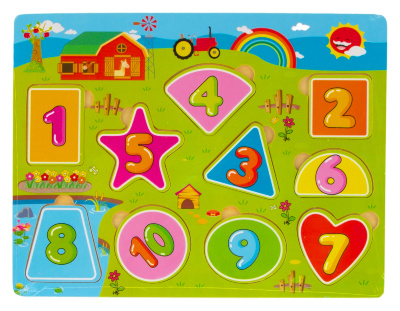 Puzzle Incastru din Lemn cu Cifre și Figuri Geometrice