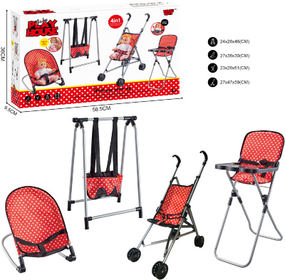 Cărucior pliabil pentru păpuși cu cadru metalic și design modern